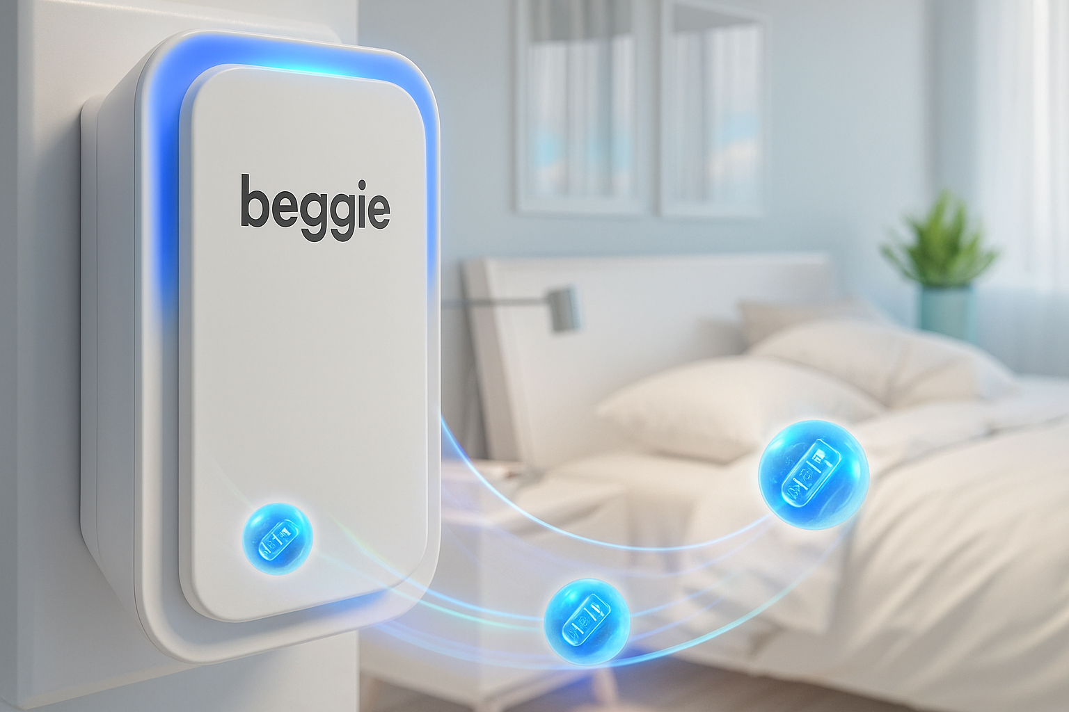 Beggie Ion uses negative-ion technology to neutralise these particles and refresh the air.