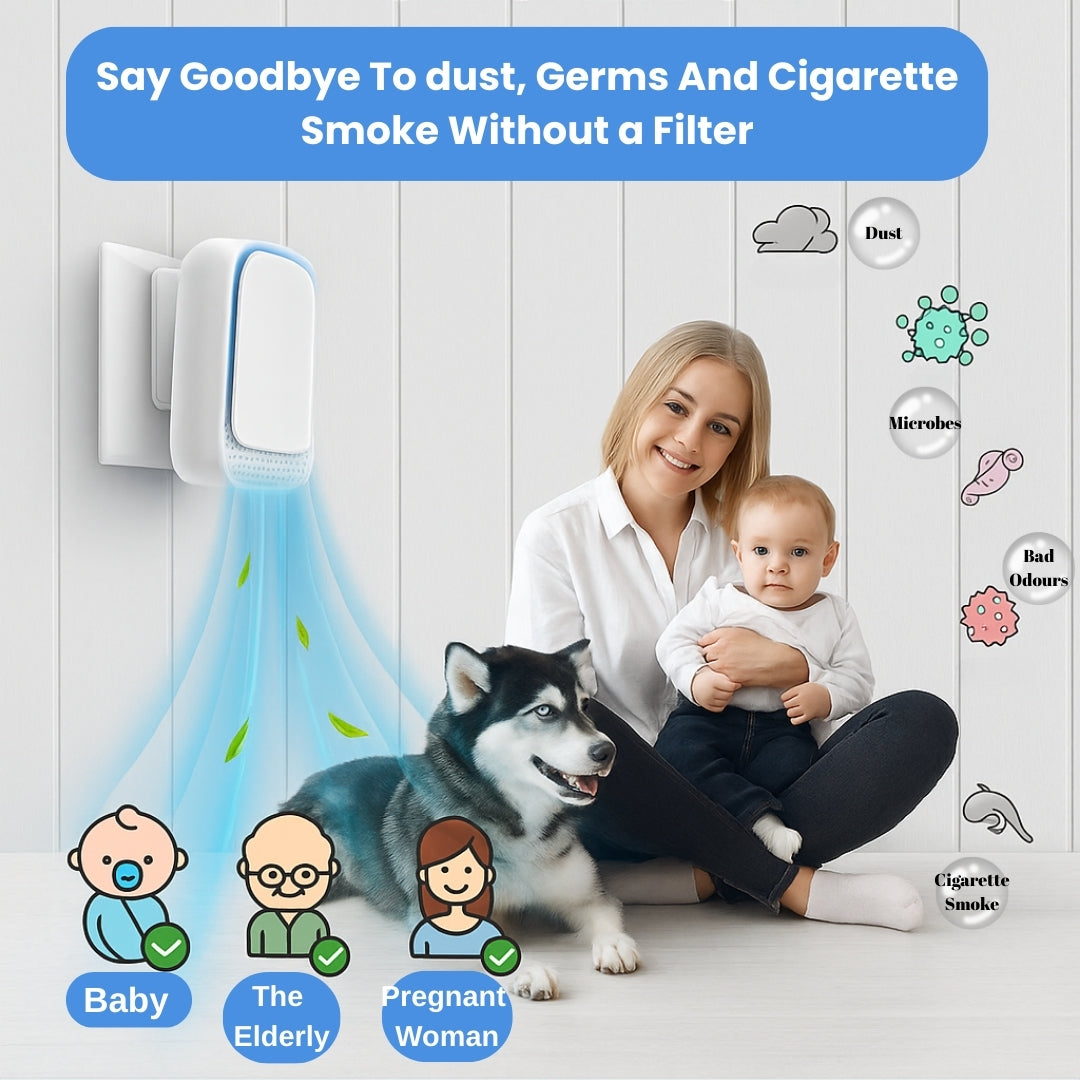 Beggie Ion operates almost completely silently, cleaning the air unnoticed for 24 hours. No filter changes, no maintenance costs — just plug it in and forget about it.